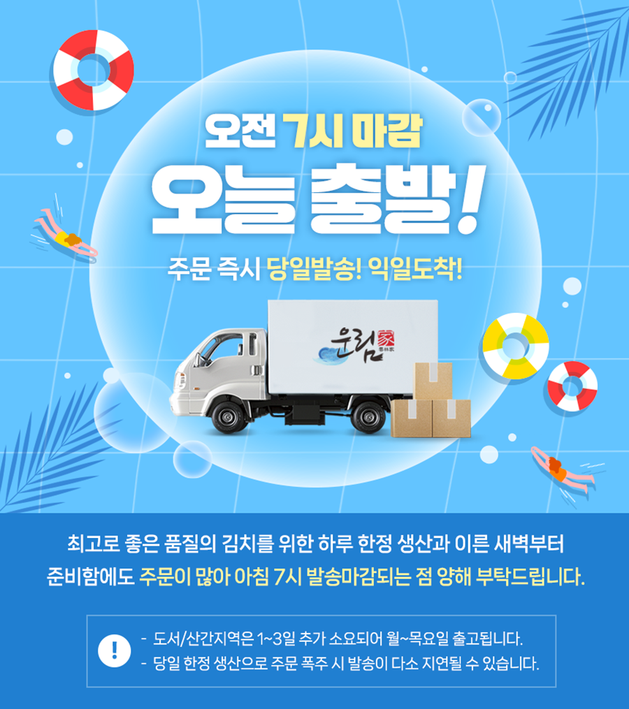 주문확인 후 1~3일 소요 (주말제외) ★ 명인김치는 발송 기간이 다르오니 확인후 주문부탁드립니다.