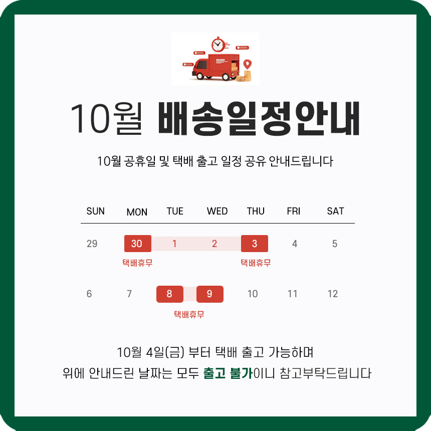 주문확인 후 1~3일 소요 (주말제외) ★ 명인김치는 발송 기간이 다르오니 확인후 주문부탁드립니다.